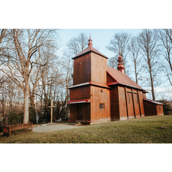 A Greek Catholic temple, built in the last years of the 18th century. It shared the fate of many of its kind, which was turned into Orthodox and Roman Catholic churches by political decisions taken in the 1950s by the then-Polish authorities. Its architectural features and decoration, however, testify to its past. The building has a log structure and is functionally divided into three parts, each topped by a small onion-shaped dome. Inside, there is a richly decorated iconostasis and polychromies on the walls.