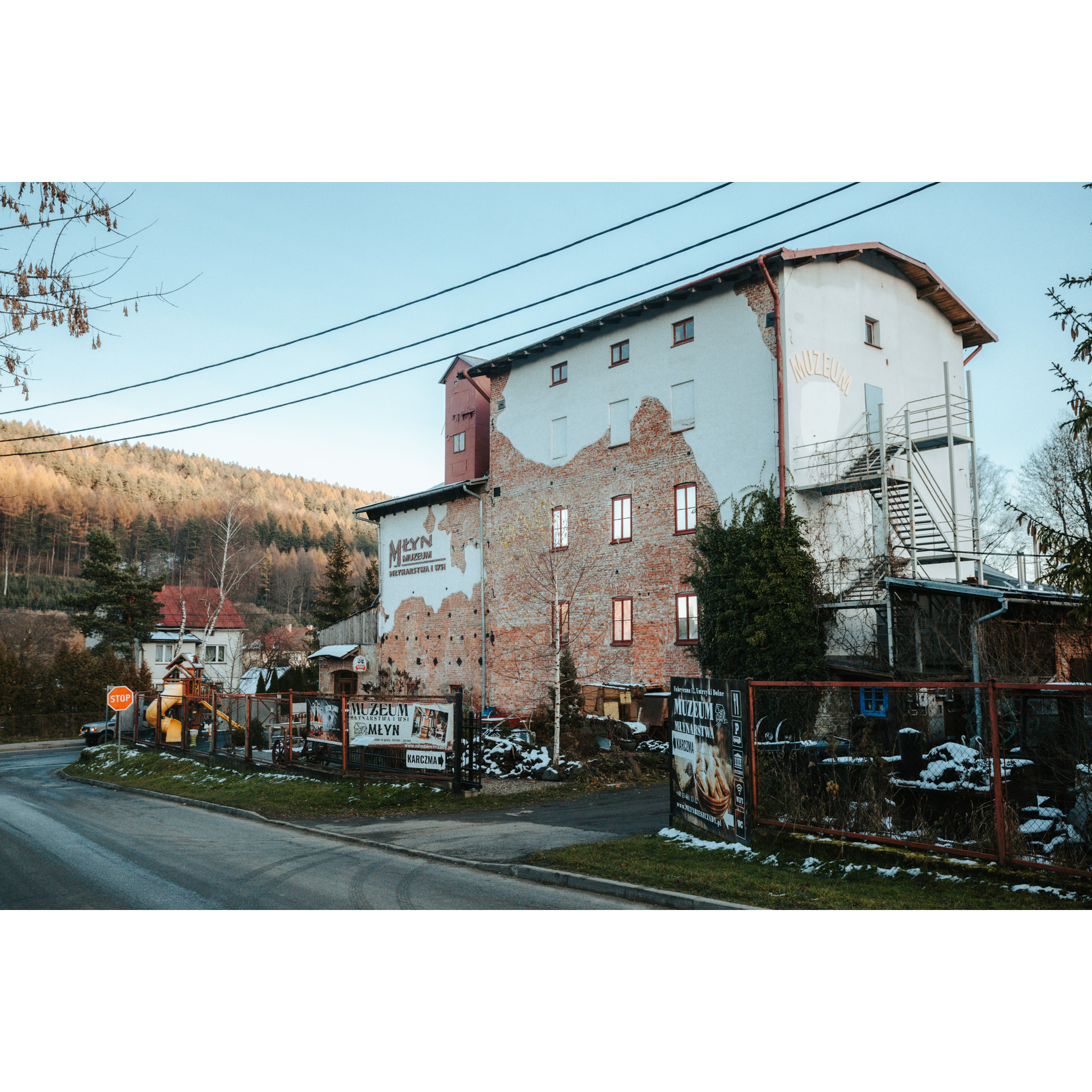 Follow the main road in an eastern direction and after a while turn right into Kolejowa Street, which will take you to regional road no. 896. You'll pass a historic mill along the way.