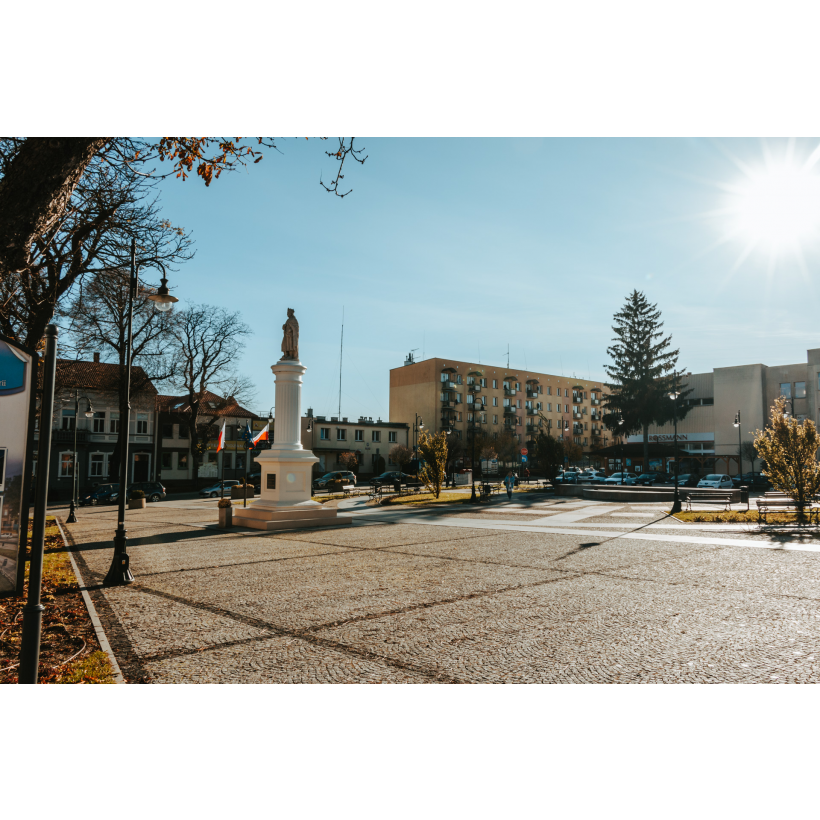 Na płycie znajduje się pomnik dawcy aktu lokacyjnego, króla Władysława Jagiełły, oraz miejsce wypoczynkowe z nowoczesną fontanną.