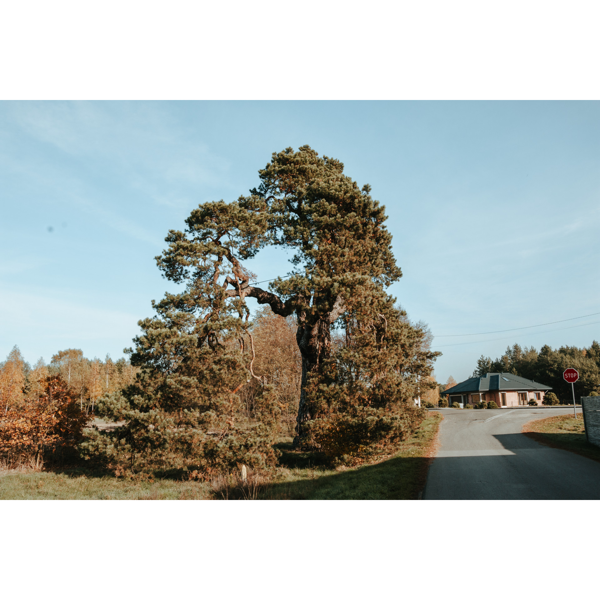 Po drodze miniesz dwór z XVII w. Za nim skręć w prawo. Po około 1,5 km dotrzesz do pomnika przyrody – Sosny Sobieskiego. Drzewo liczy kilkaset lat. Legenda głosi, że podczas przemarszu z odsieczą zbrojną dla Wiednia, w cieniu tego drzewa odpoczywał król Jan III Sobieski.